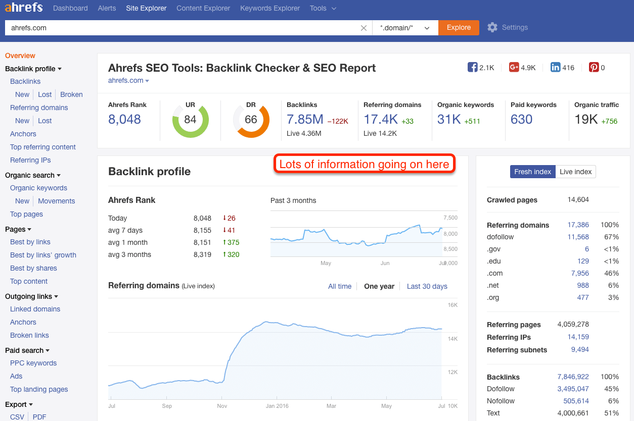 The Site Explorer, however, is also the most daunting of all the tools because there is so much information. So here’s what I think are the key features.
