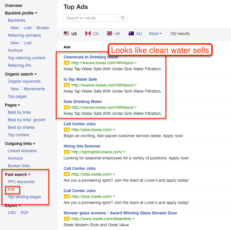 You can use the Paid section of Positions Explorer to swipe ad ideas from competitors. If you can see the angle/benefit that competitors are using, you have a direction to either copy or play off or test both.