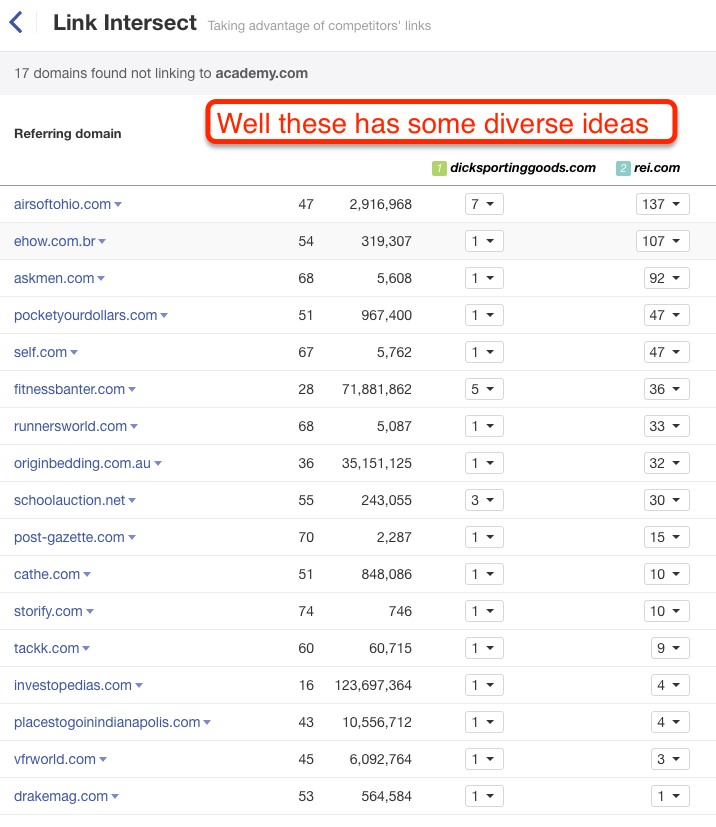 You can take your competitors – big and small – and see where they are getting their links from. You can go and try to get the same links. Or (and I recommend this approach), you can use the information to understand what has been working in the industry and use it to develop your own unique tactics.