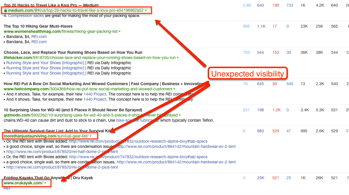 Sometimes the influencers are not in the markets you expect. In the example above – REIs biggest influencers are in the travel hacking & survivalist niches.